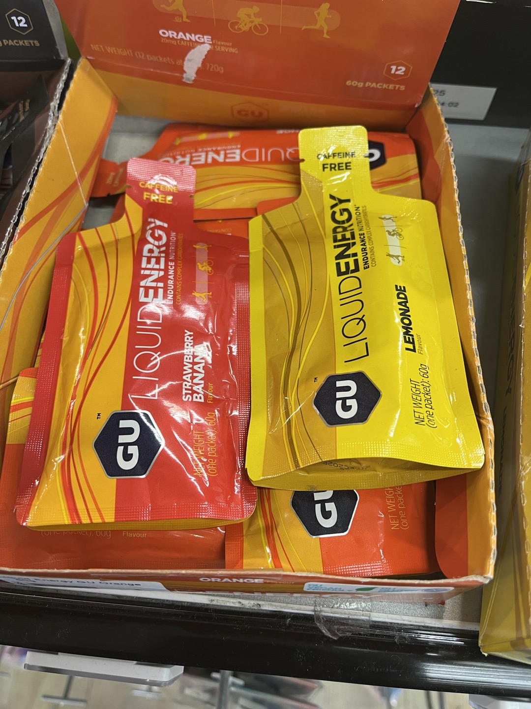 GU Liquid Energy는 GU Energy Gel과 비슷한 성분을 지녔지만, 좀 더 물 같은 식감이 특징이에요. 젤 타입의 식감을 좋아하지 않는 러너들에게 추천되며, 단맛도 덜해 부담이 적은 것 같아요 성분은 거의 동일하지만 흡수는 빠르고, 목 넘김이 편안합니다.