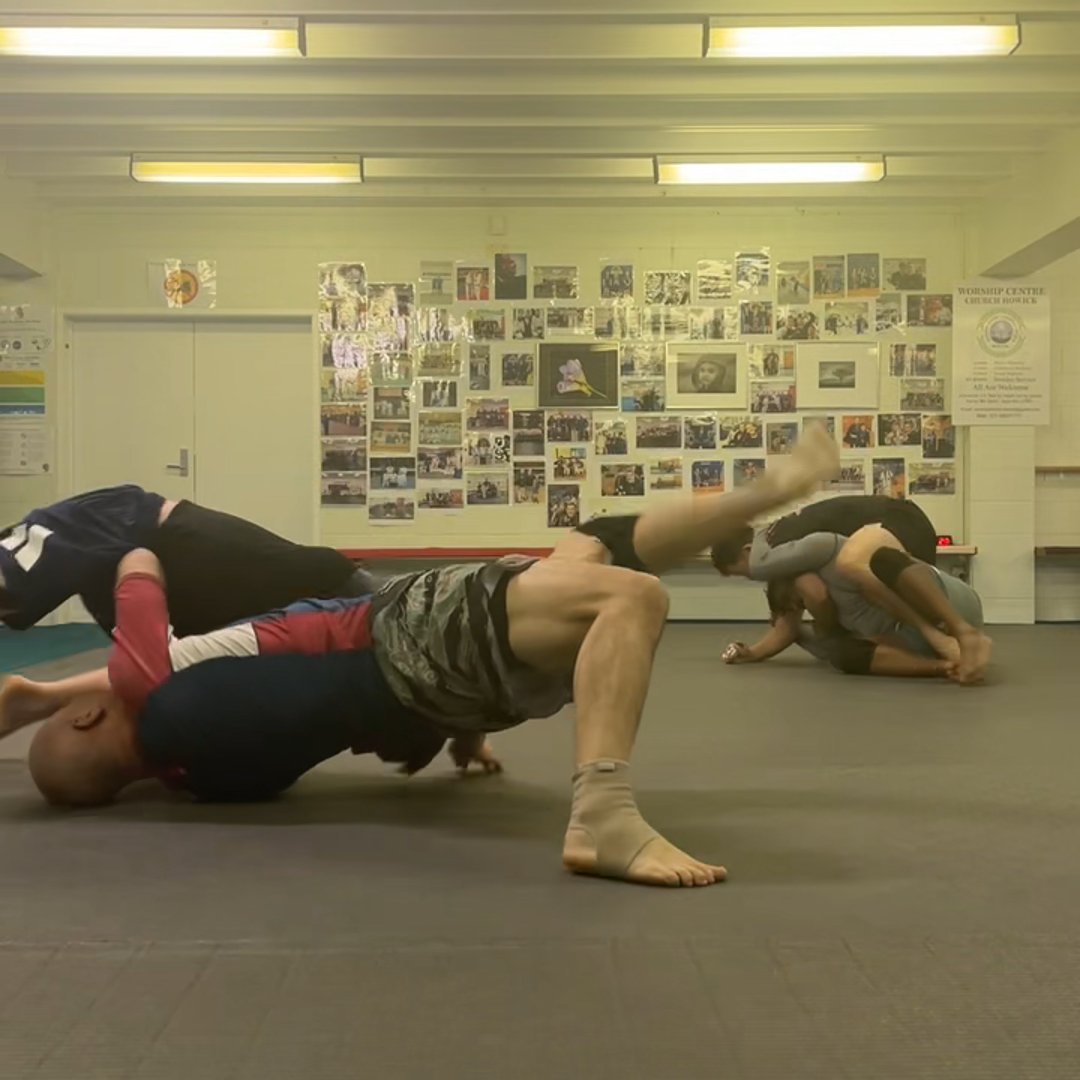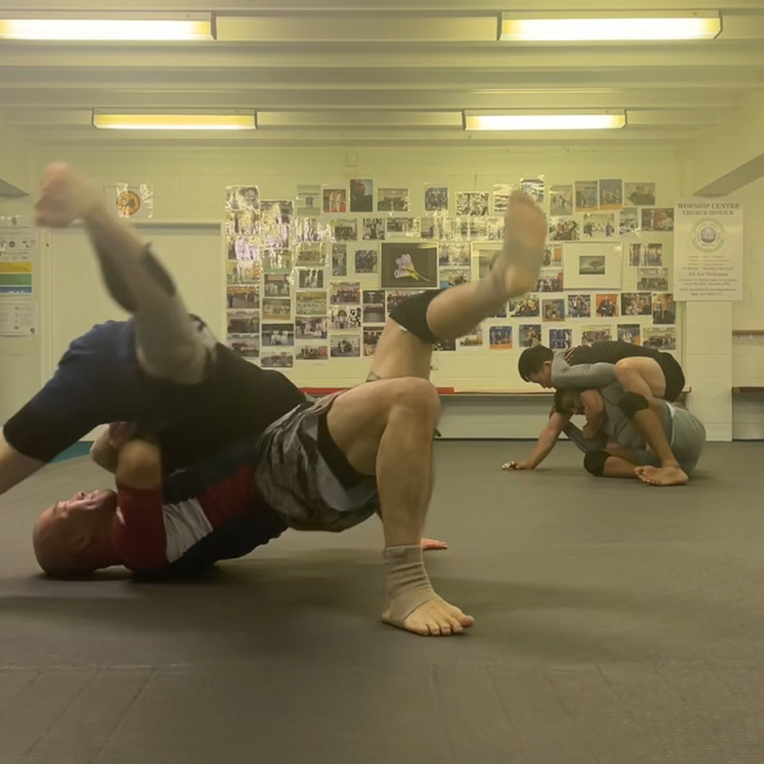상대가 기무라 방어를 위해 돌아가는 타이밍에 맞춰 브리지를 시도합니다. 상대방의 움직임에 맞춰 균형을 무너뜨리고 스윕을 성공시켜 포지션을 역전합니다.